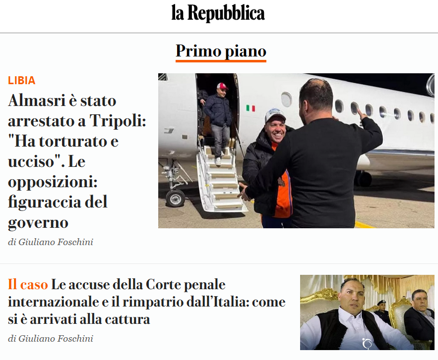 (Roma, 5 novembre 2025) – Il Governo italiano ha trattato con guanti di velluto il generale Almasri, ex capo della sicurezza delle brutali carceri libiche, sottoposto a un mandato di cattura dalla Corte penale Internazionale per crimini contro l’umanità e di guerra, tra cui omicidio, tortura, violenza sessuale e persecuzione, che oggi il suo Paese, la Libia, ha arrestato a Tripoli.