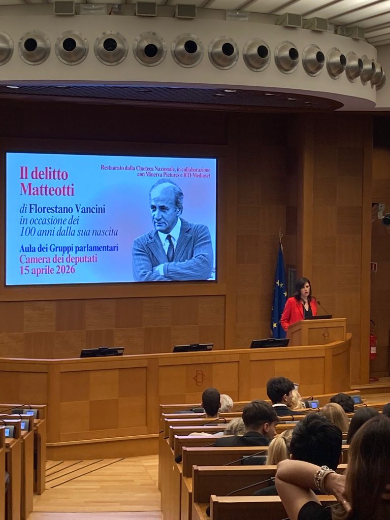 (Roma, 15 aprile 2026) – Questa mattina, presso l’Aula dei Gruppi parlamentari della Camera, si è svolta la proiezione del film “Il delitto Matteotti“, promossa nel centenario della nascita del regista Florestano Vancini. Un appuntamento significativo non solo per rendere omaggio a uno dei grandi autori del cinema italiano, ma anche per riflettere sullo stato di salute del settore cinematografico nazionale.