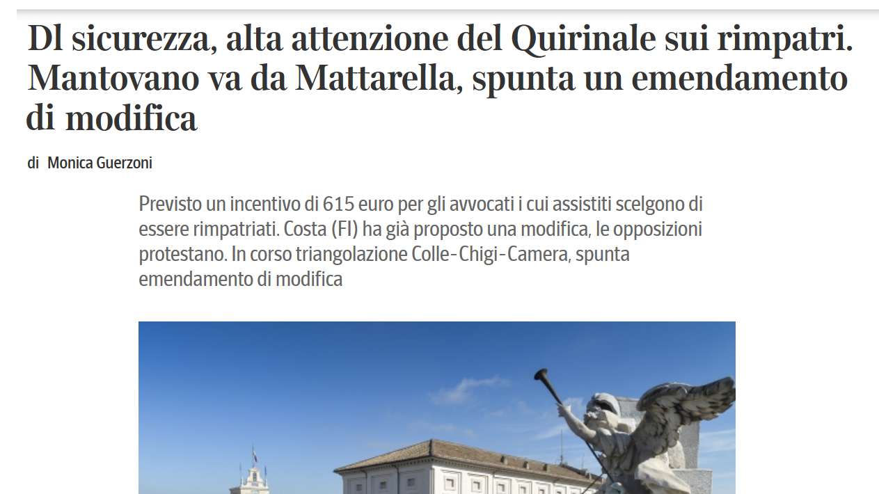 È necessario fermare l’iter di questo provvedimento ed eliminare quantomeno le disposizioni contestate. Su temi così delicati non sono ammesse forzature né scorciatoie: serve responsabilità istituzionale, rispetto dei principi costituzionali e tutela dei diritti fondamentali.Della delicatezza del momento molto dice la decisione del sottosegretario Mantovano di recarsi al Quirinale.